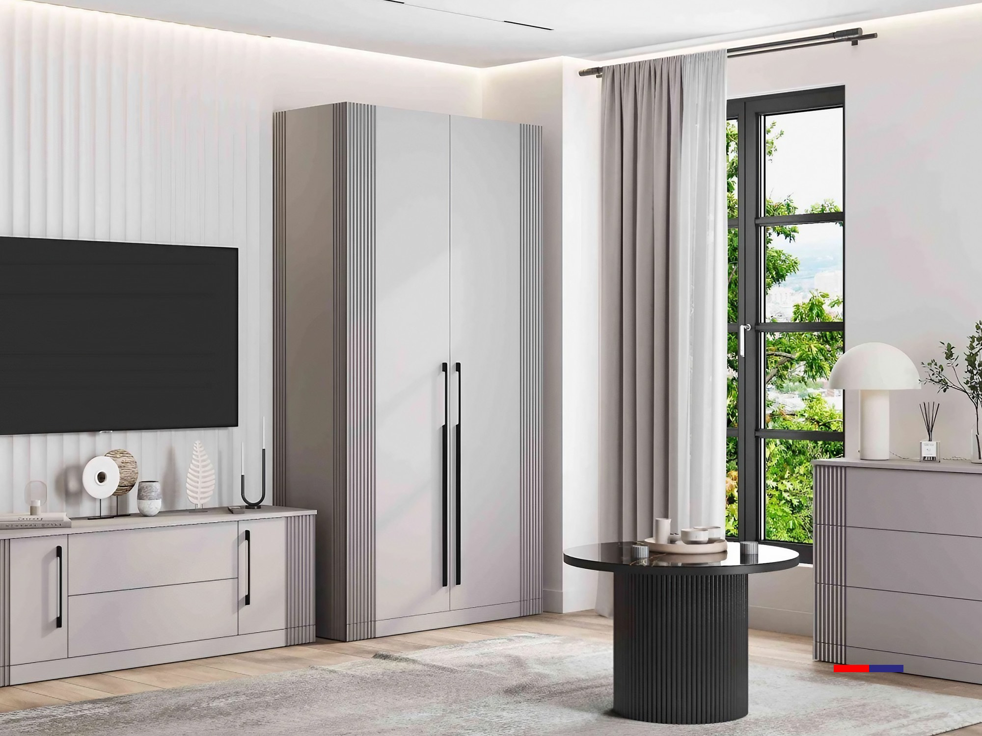 Распашной шкаф идеально впишется в любой интерьер. Пастельные оттенки входят в топ лучших цветов для оформления современного стиля. Фрезеровка добавляет изысканности и творческую нотку в дизайн мебели.